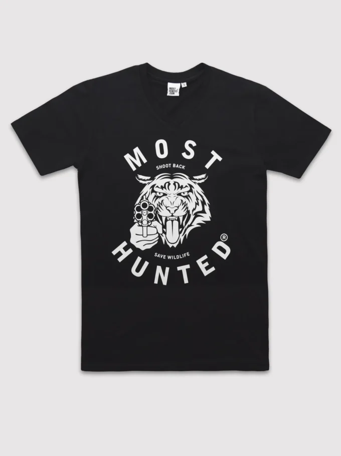 A tiger’s strength is unmatched. Majestic, graceful, intelligent, powerful. In a fair fight, it would effortlessly defeat a human. Unfortunately, the fight now is anything but fair. Stand up and fight like a tiger. Wear and share Most Hunted. Save Wildlife.
