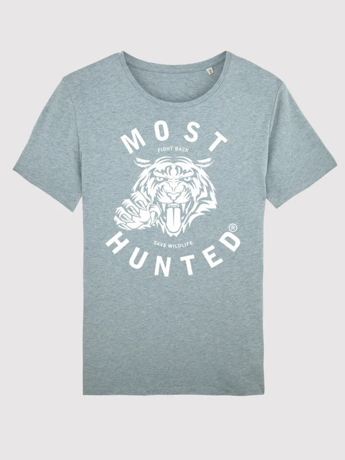 A tiger’s strength is unmatched. Majestic, graceful, intelligent, powerful. In a fair fight, it would effortlessly defeat a human. Unfortunately, the fight now is anything but fair. Stand up and fight like a tiger. Wear and share Most Hunted. Save Wildlife.