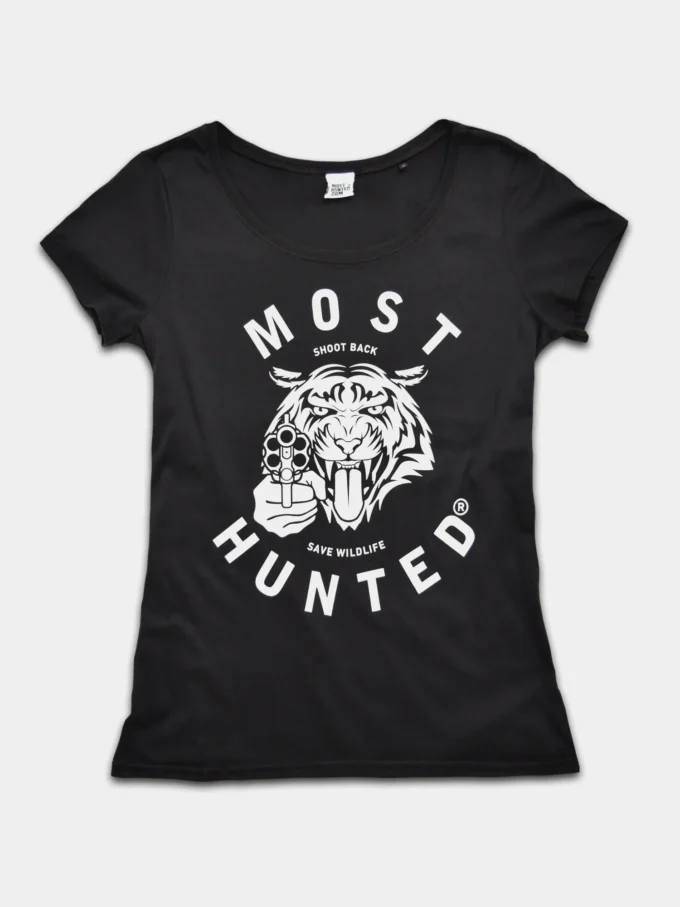 A tiger’s strength is unmatched. Majestic, graceful, intelligent, powerful. In a fair fight, it would effortlessly defeat a human. Unfortunately, the fight now is anything but fair. Stand up and fight like a tiger. Wear and share Most Hunted. Save Wildlife.