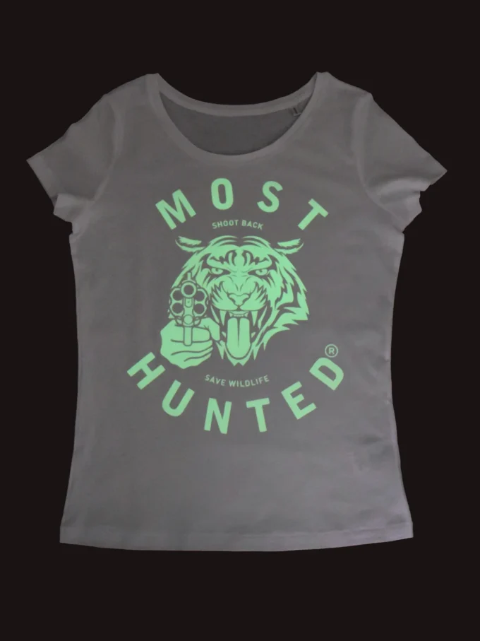 A tiger’s strength is unmatched. Majestic, graceful, intelligent, powerful. In a fair fight, it would effortlessly defeat a human. Unfortunately, the fight now is anything but fair. Stand up and fight like a tiger. Wear and share Most Hunted. Save Wildlife.