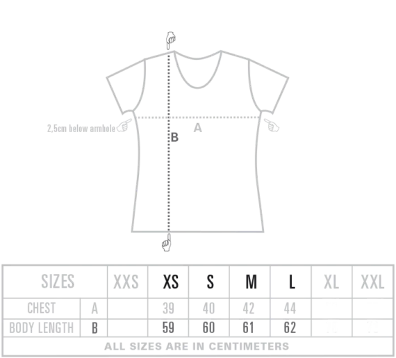 Measure a garment that fits you well and compare the dimensions with the size chart below.