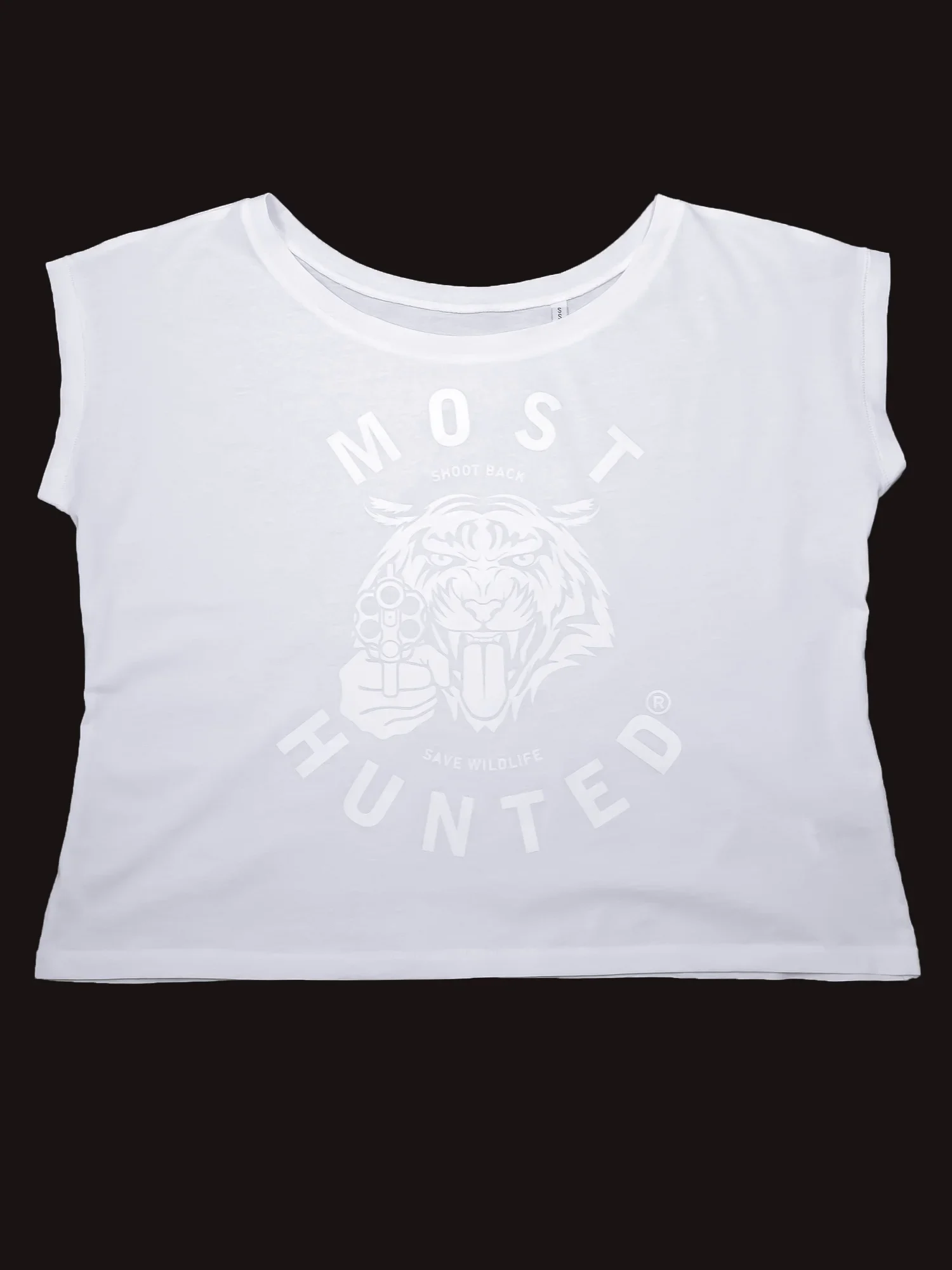 De kracht van een tijger is ongeëvenaard. Majestueus, gracieus, intelligent, krachtig. In een eerlijk gevecht zou hij de mens moeiteloos verslaan. Helaas is het gevecht nu allesbehalve eerlijk. Sta op en vecht als een tijger. Draag en deel Most Hunted. Save Wildlife.