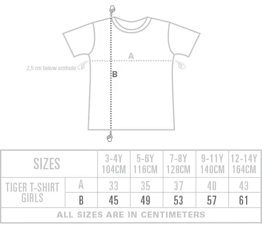 3-4J / 98-104cm, 5-6J / 110-116cm, 7-8J / 122-128cm, 9-11J / 134-148cm, 12-14J / 152-164cm