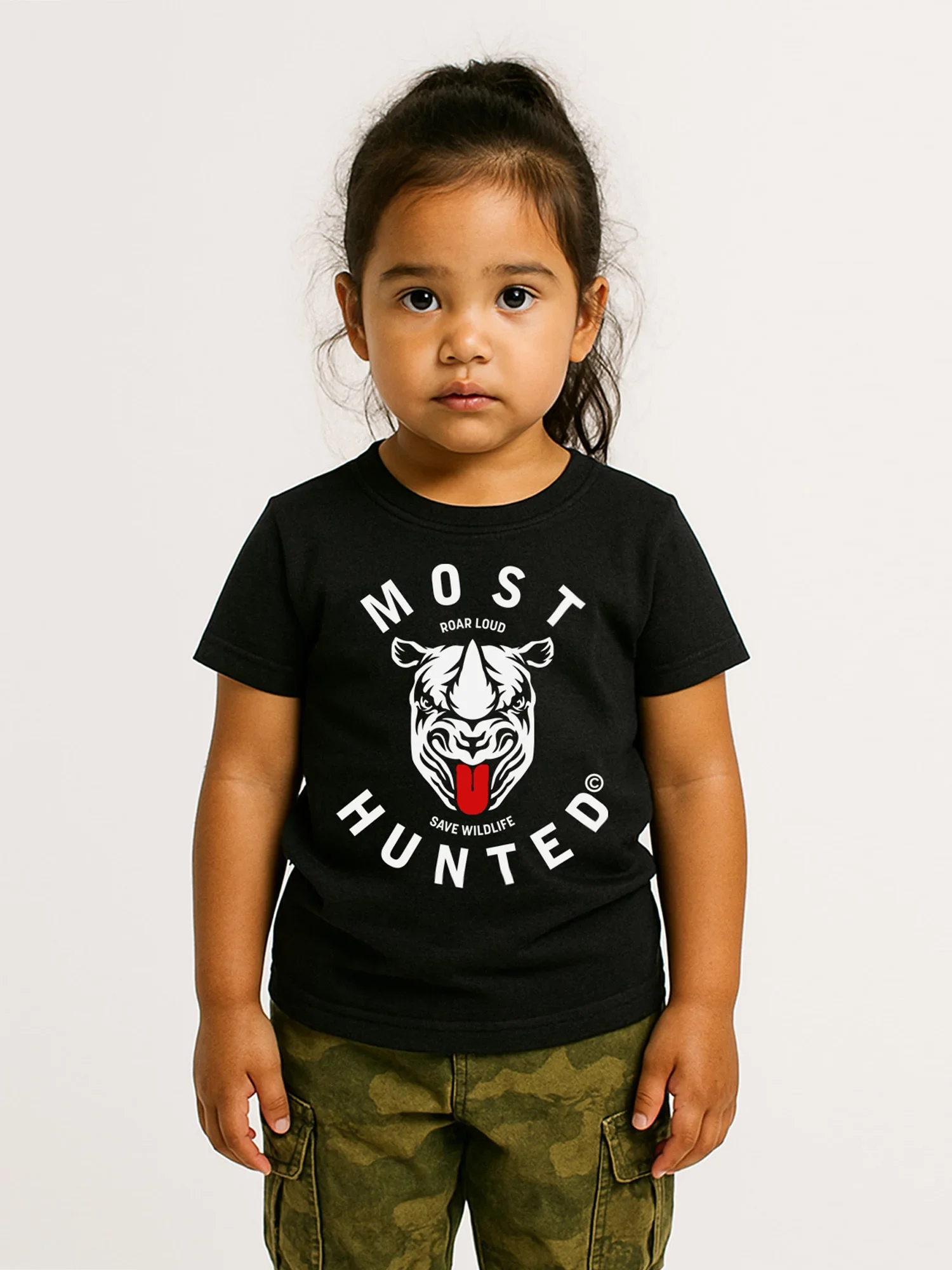 De westelijke zwarte neushoorn is al uitgestorven. Als stropers blijven jagen op neushoorns voor hun hoorns, zouden alle soorten sneller kunnen uitsterven dan je denkt. Daarom strijden wij tegen deze misdaden tegen wildlife. Kom in actie en vecht als een neushoorn. Draag en deel Most Hunted. Save Wildlife.
