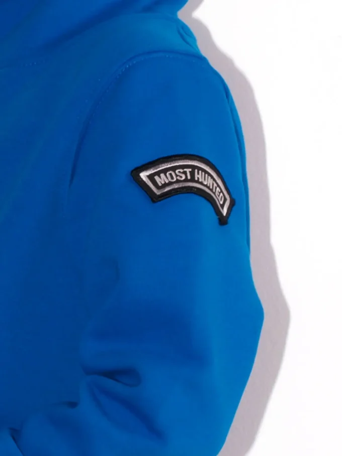 Blauwe MOST HUNTED hoodie voor jongens en meisjes met opvallend fluor geel tijgerdesign.