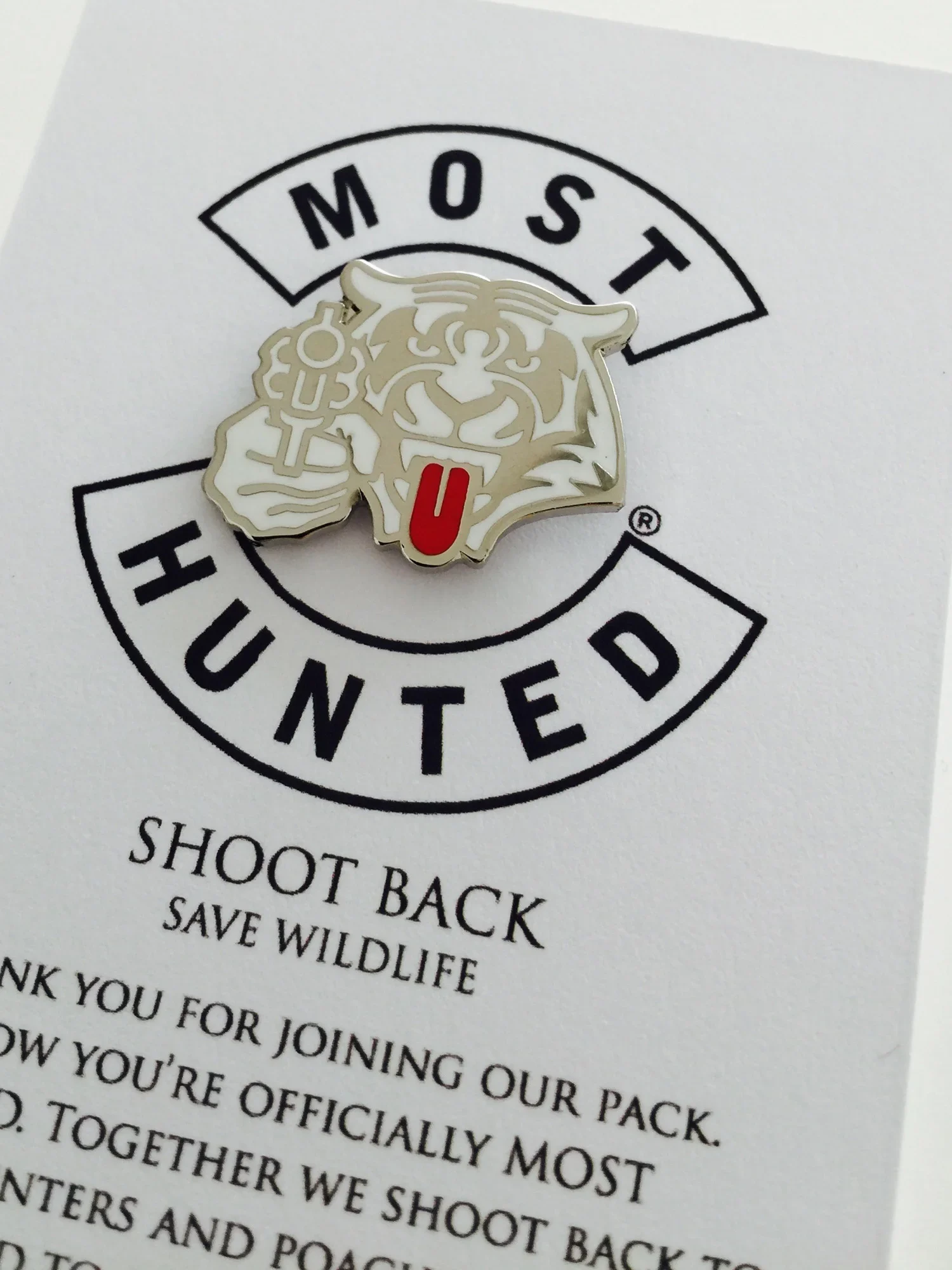 De metalen pins van Most Hunted combineren stijl en betekenis met een krachtig doel. Deze pin in de vorm van een stoere tijgerkop is de perfecte finishing touch voor je outfit: draag hem op je jas, tas of pet om subtiel maar krachtig een statement te maken. Gemaakt van hoogwaardig metaal voor een duurzame en elegante uitstraling. Met deze unieke pin laat je niet alleen je persoonlijke stijl zien, maar draag je ook bij aan de bescherming van bedreigde diersoorten. Kies voor een detail met impact. Draag en deel Most Hunted. Save Wildlife.